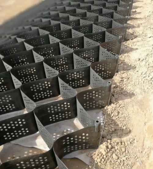 Description: Geocell is a three-dimensional, honeycomb-like geosynthetic structure made from high-density polyethylene (HDPE). It is designed to provide soil confinement, improve load distribution, and prevent erosion. Once expanded and filled with soil, aggregate, or concrete, Geocells create a stable layer that enhances the performance of roads, slopes, and other infrastructure projects.